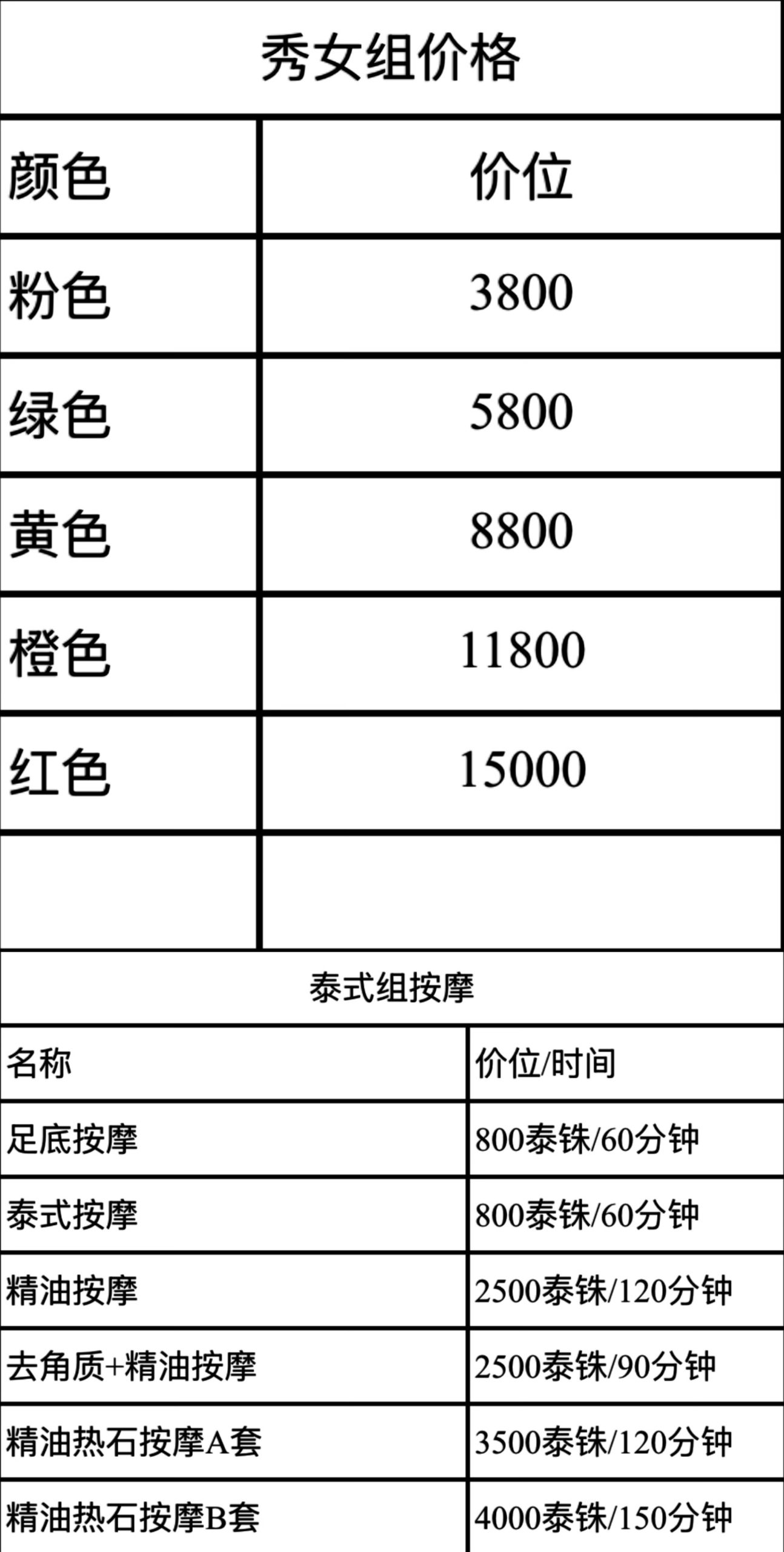 课程内容主要特色是中式非遗“莞”16式,价格牌从3800~15000泰铢不等,80分钟1个种。不同楼层代表不同的学习价格,泰国、中国、越南、俄罗斯4大热门课程导师(后期据说会引进日韩老师),顶层是VIP泰浴课程包房。预约微信dd321600